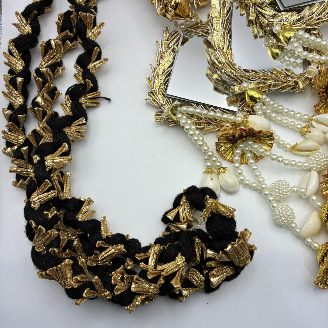 £25.00 Add to cartSilver Coloured Paranda with Diamond Mirrors, Gold Coloured Pearl Beading and Kaudi Cowrie Shells