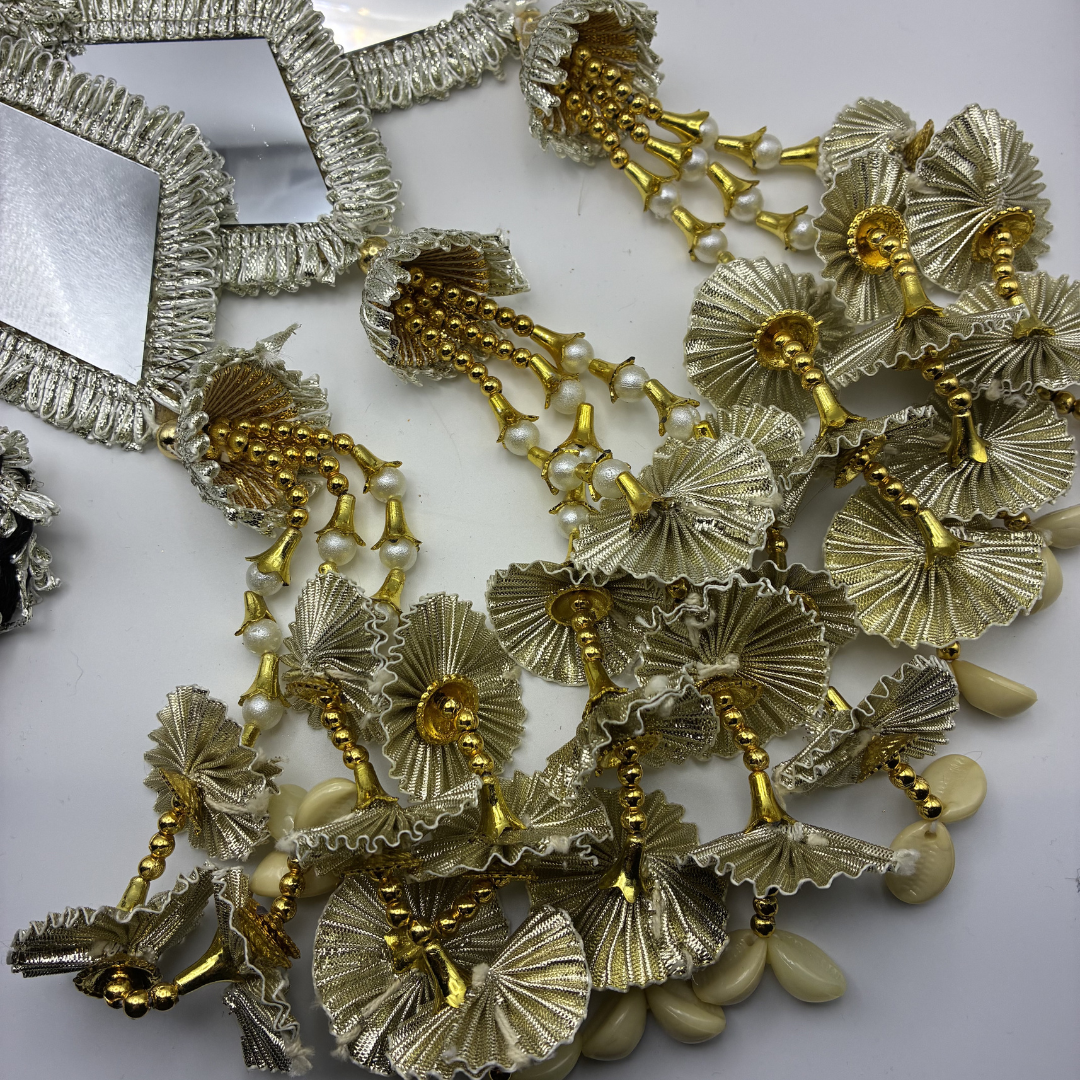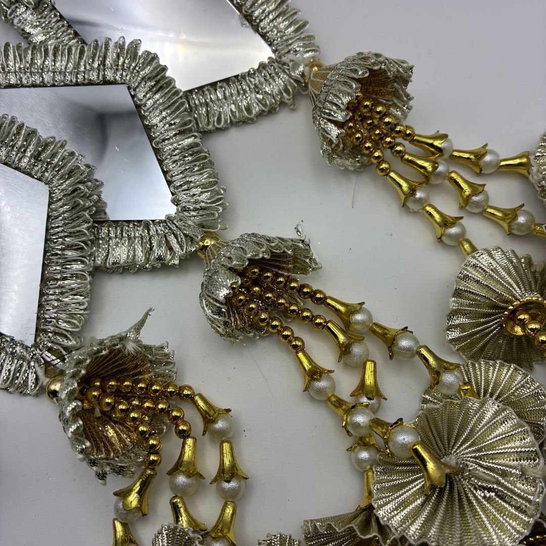 £13.99 Add to cartSilver Coloured Paranda with Square Mirrors, Gold Coloured Beading and Kaudi Cowrie Shells