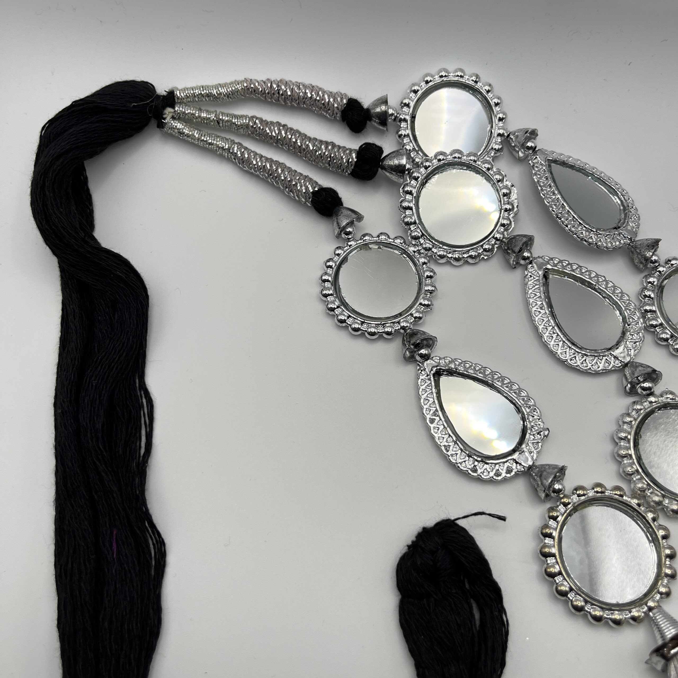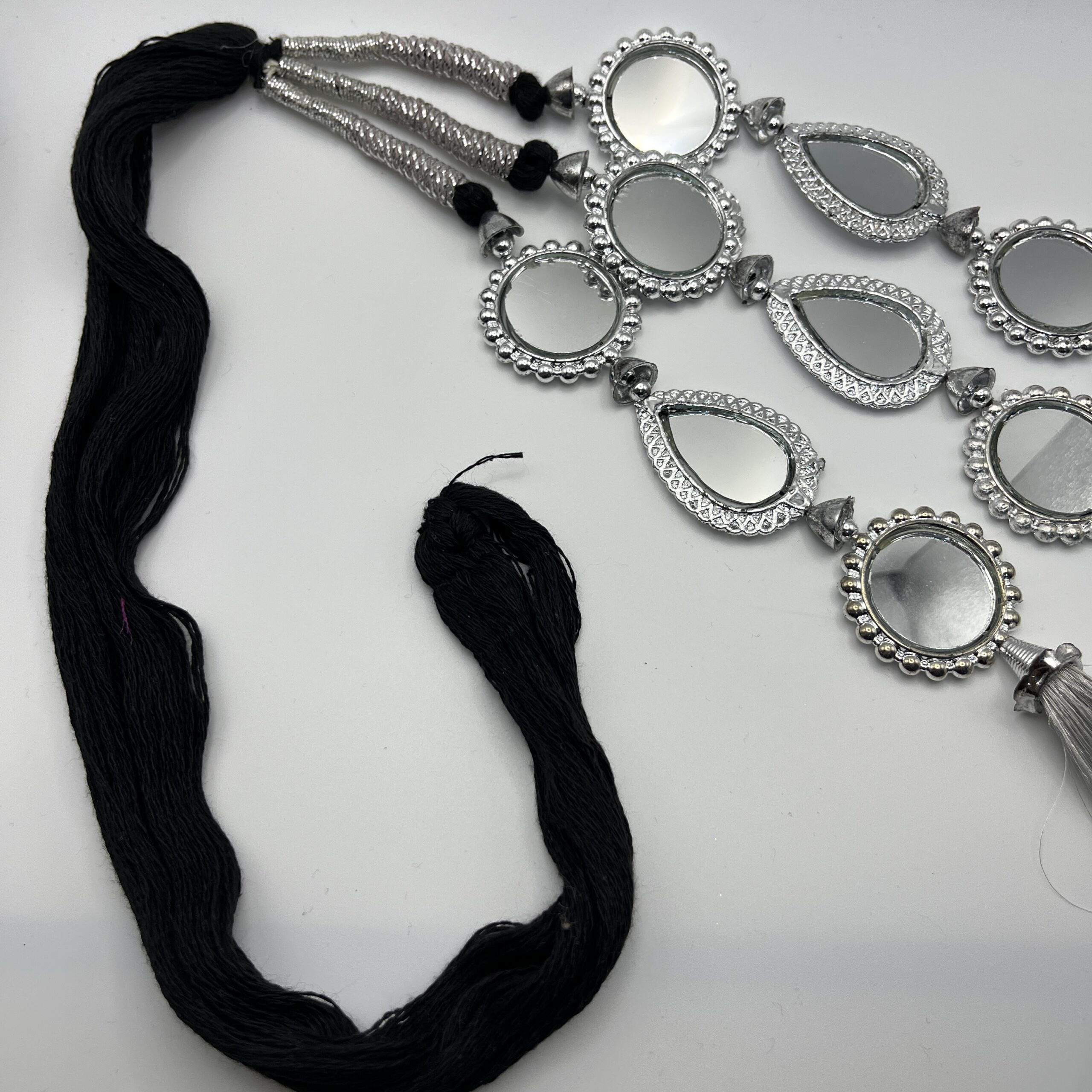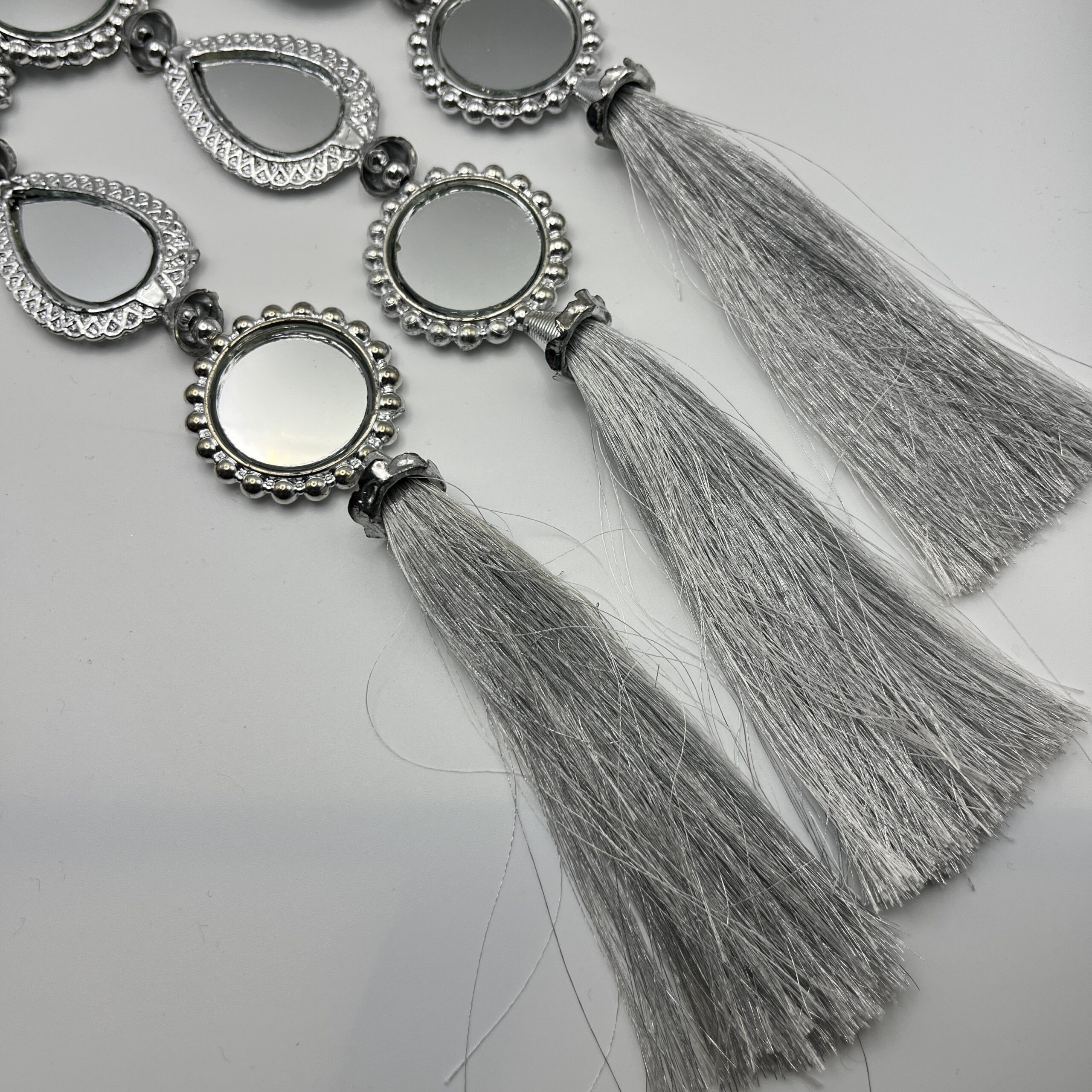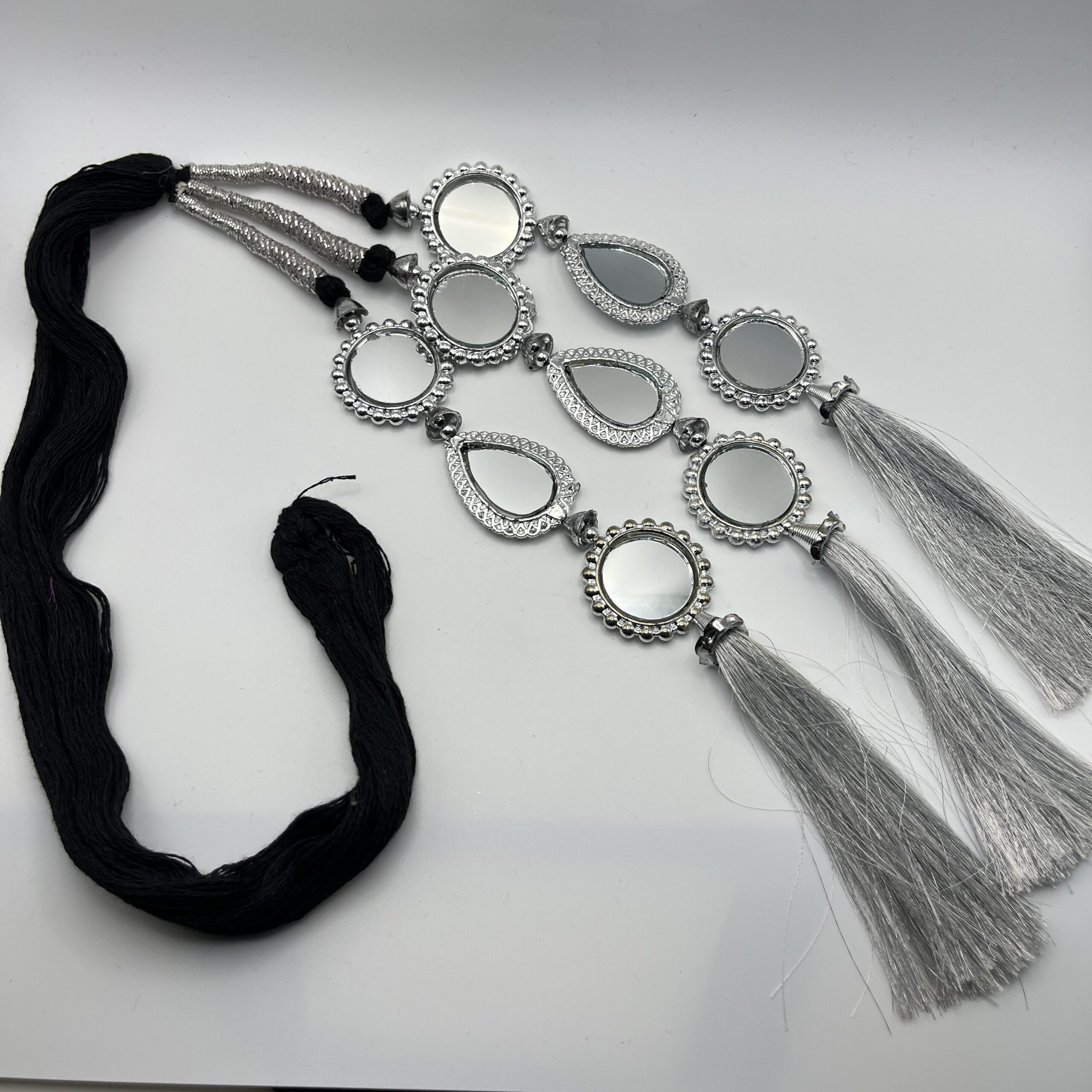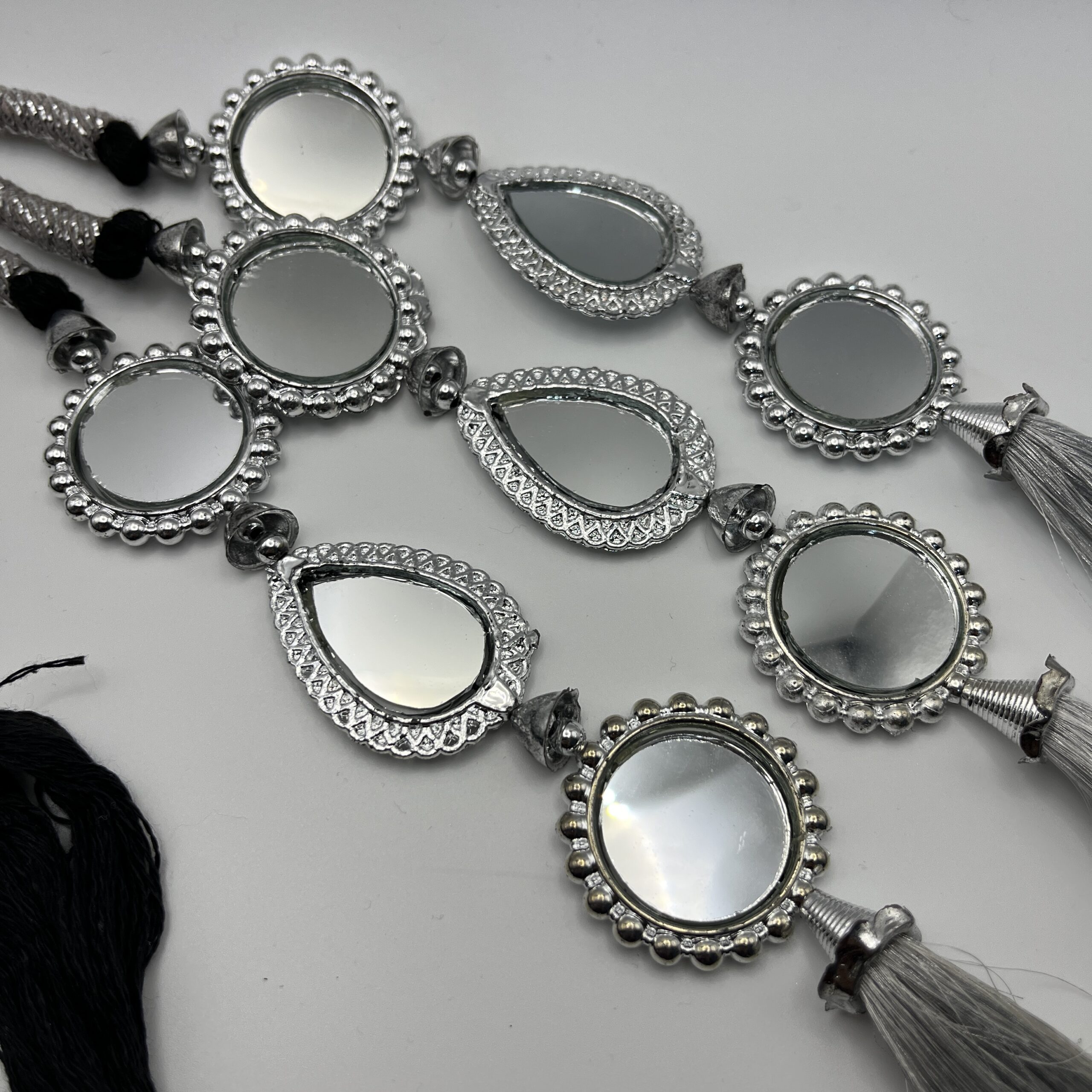 Silver Coloured Paranda with Square Shape Mirrors & Ghota Dori